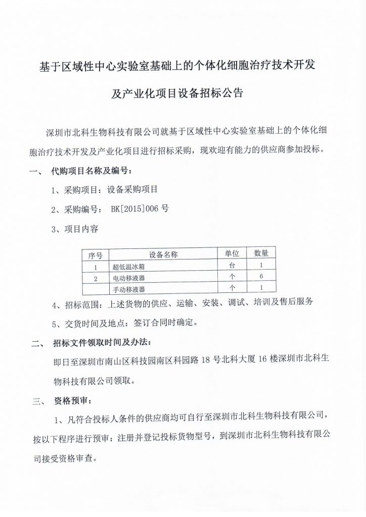 基于地区性中间尝试室根本上的个别化细胞医治手艺开辟及财产化名目装备投标通知布告