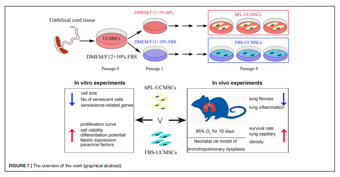间充质干细胞医治肺支气管发育不良,用体外扩增取得充足的MSCs是知足临床医治的条件。在曩昔的医治BPD的临床前和临床研讨中,大大都是利用胎牛血清(FBS)作为人源MSCs培育增添物[2]。但这已不合适国度药品监视办理局药品审评中间(NMPA)对人源性干细胞产物的最新请求——“干细胞产物出产中应尽量防止利用植物源性资料”。同时,胎牛血清作为异源卵白,培育扩增人源MSCs会增添其免疫原性并增进细胞朽迈[3],是以,全天下范围内都在(zai)尽力寻觅胎(tai)ꦛ牛(niu)血(xue)清的取(qu)(qu)代品(pin)。今朝,一种商品(pin)化的人血(xue)小🌠(xiao)板(ban)裂解液(hPL)作为间充质干细胞培育增添物取(qu)(qu)得了(le)科(ke)研(yan)职员极大的存眷(juan)。
